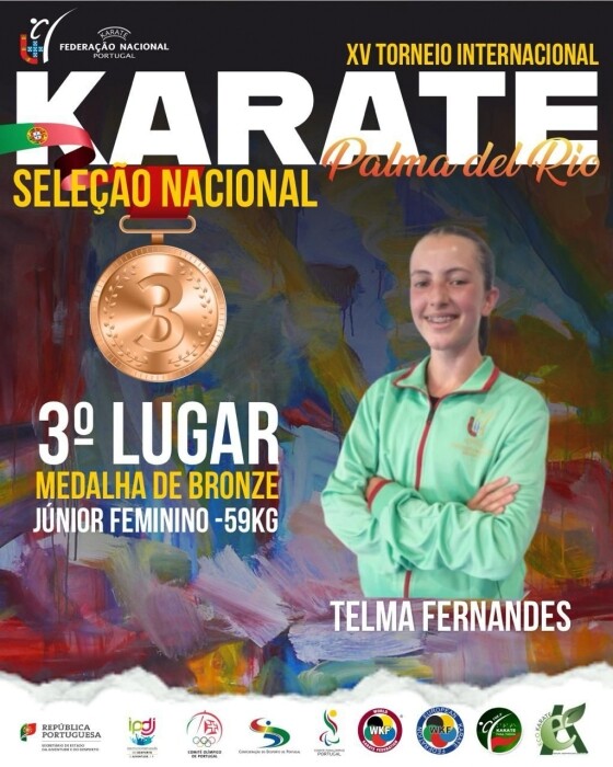 A jovem atleta Telma Fernandes brilhou no tatame ao garantir a medalha de bronze na categoria Kumite Júnior -59kg, no prestigiado XV Torneio Internacional de Palma del Rio, que decorre em Córdoba, Espanha, entre os dias 19 e 22 de setembro de 2024.